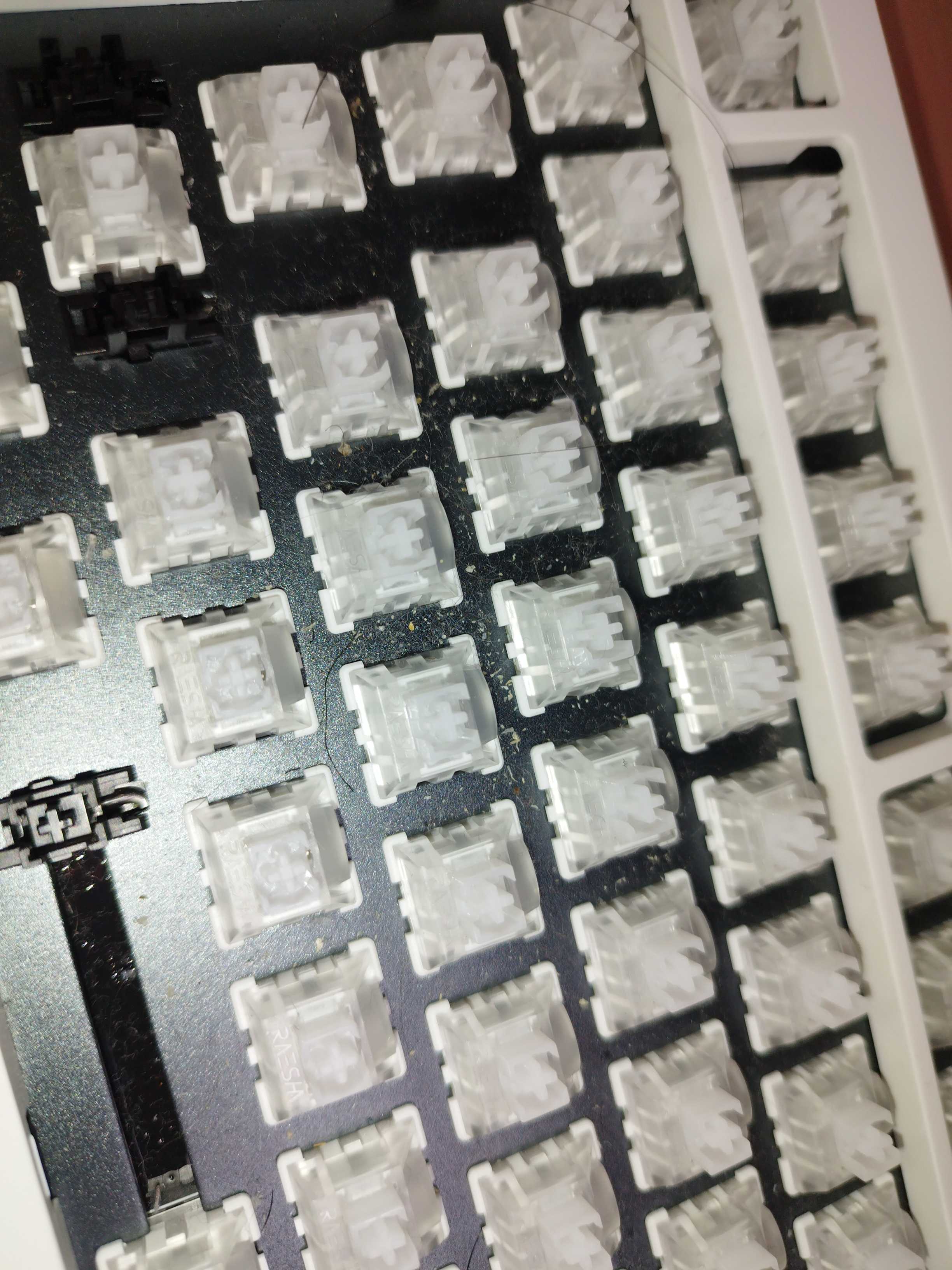 → 潤滑剤をキースイッチ内部に塗布することによって、キーの押下時と解放時の打鍵音を軽減させる。