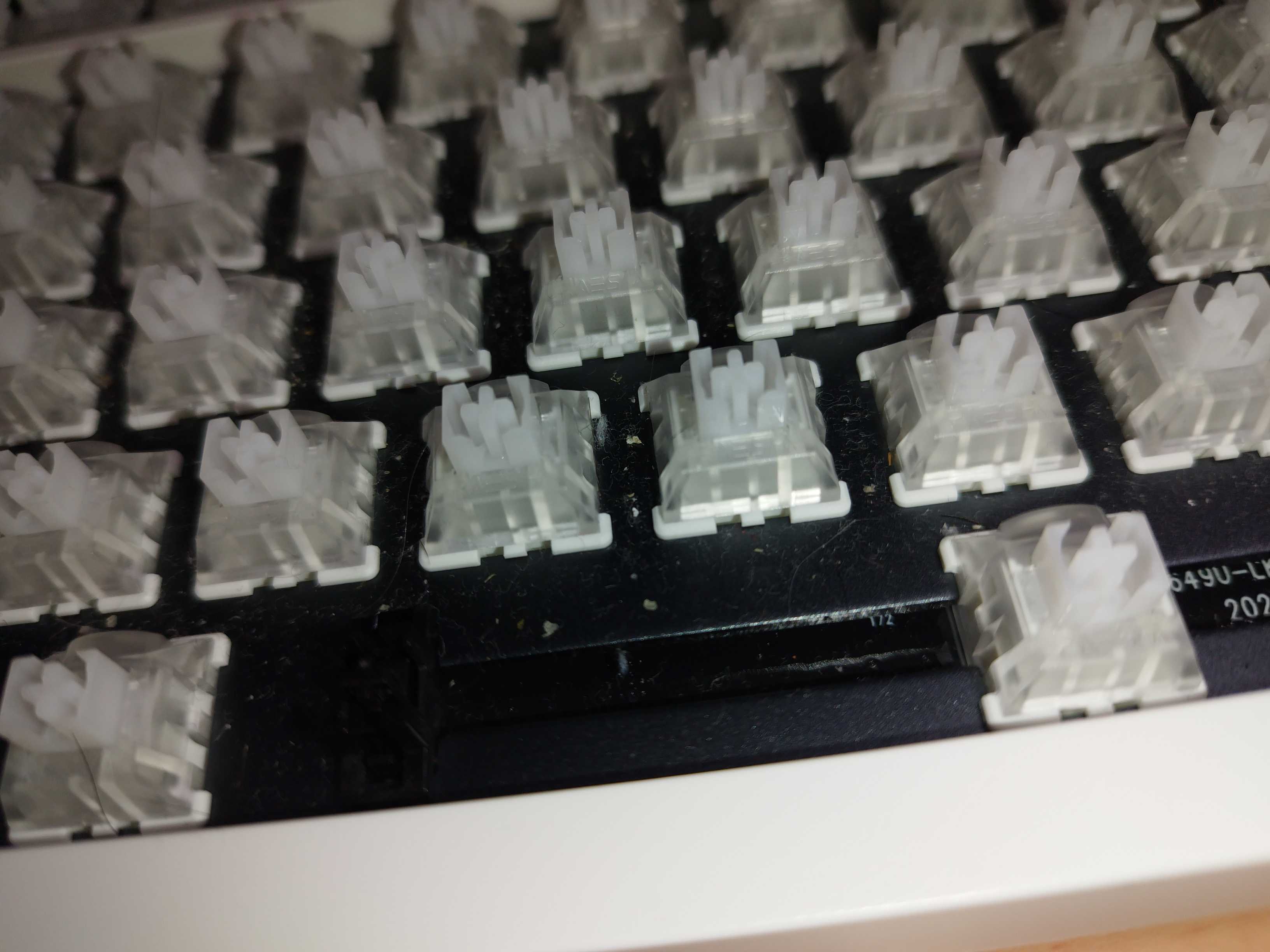 キースイッチが接する箇所は水気が溜まりやすいので、エアダスターで吹き込むか、衝撃を与えて、水気を切るといいです。